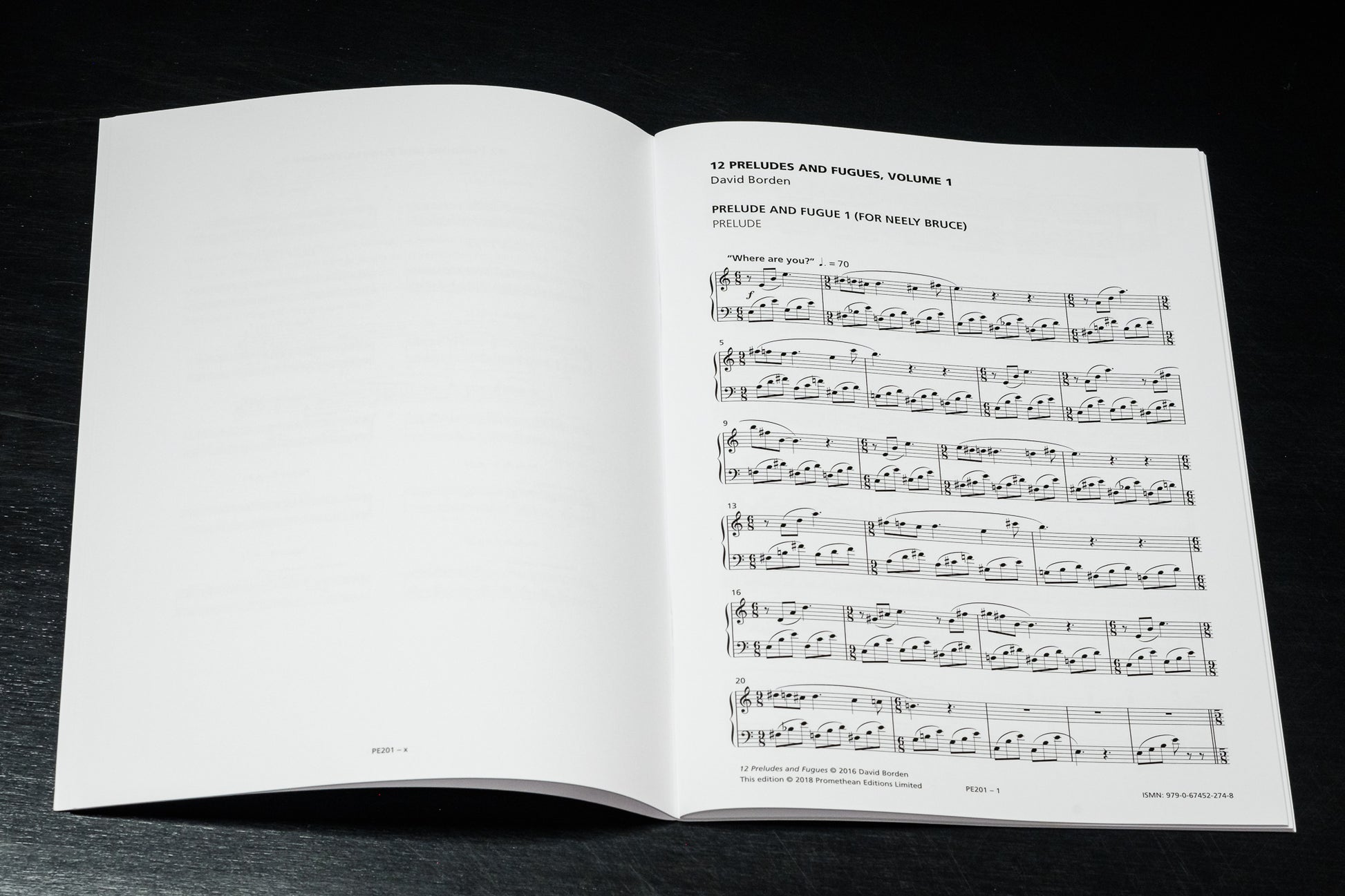 A master in the art of counterpoint, Borden initially derived the musical material of each of the preludes and fugues in this collection from the letters of the name of the person to whom it is dedicated. Using the Pythagorean numerology alphabet, the remaining letters in the name were matched to a number, and then these numbers were assigned to the pitches of a mode that best “fit” the name. Once a suitable mode was found, and each letter assigned its pitch, the rhythmic shape of the fugue subject was determined.