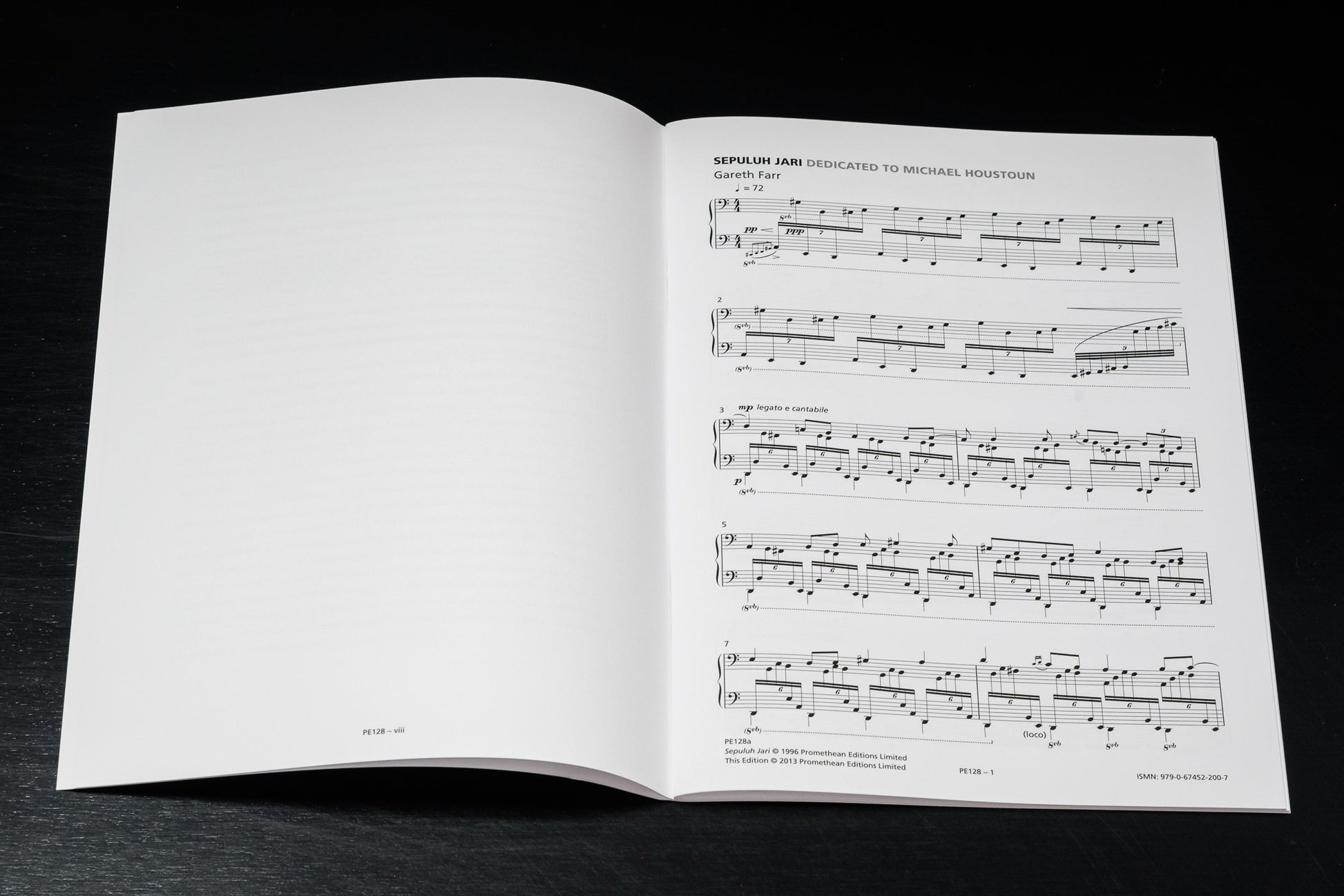 Balinese Pieces (1996-2003) is a set of three piano works influenced by gamelan music of Indonesia. This set includes Sepuluh Jari (“ten fingers”), Tentang Cara Gamelan (“on the technique of gamelan”), and Jangan Lupa (“don’t forget”). Farr perfectly captures the exciting rhythms and beautiful sonorities of this gamelan music and combines it with sounds and textures reminiscent of French impressionism. His writing for piano in these pieces is virtuosic with fast melodic passages and complex rhythms. The three pieces can be performed together as a set or separately as stand-alone works. Balinese Pieces is sure to be a highlight in any professional piano recital programme.