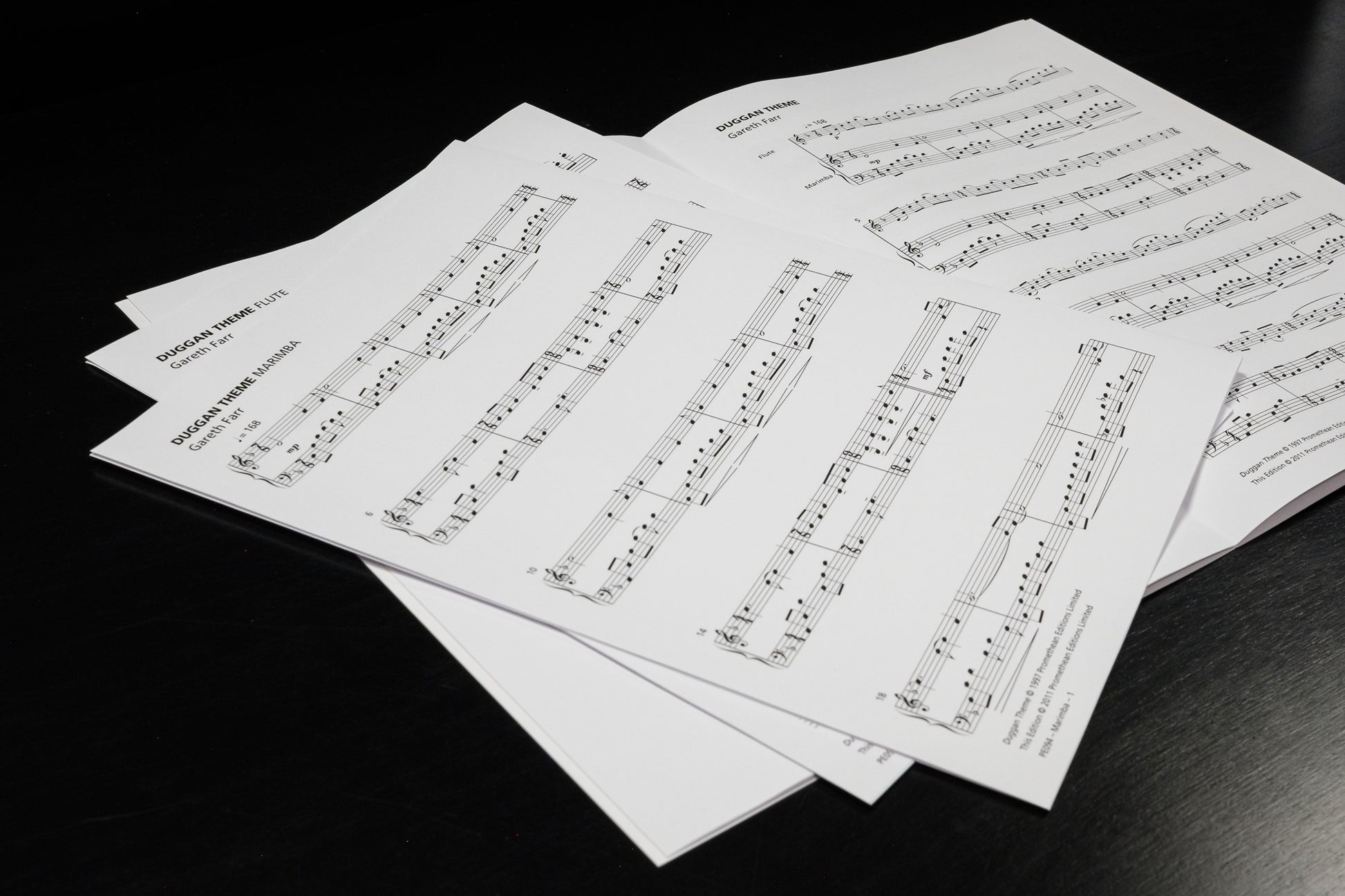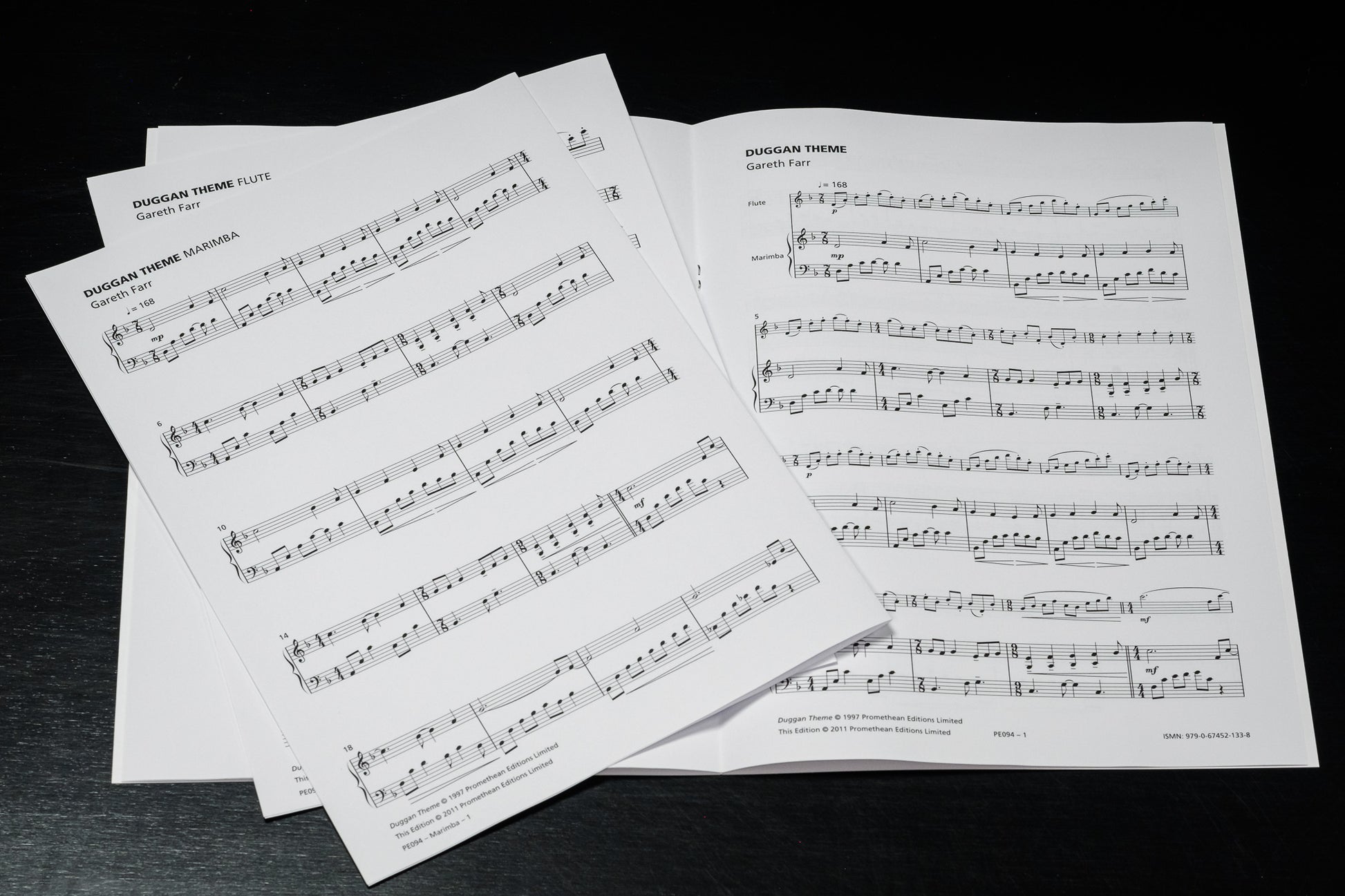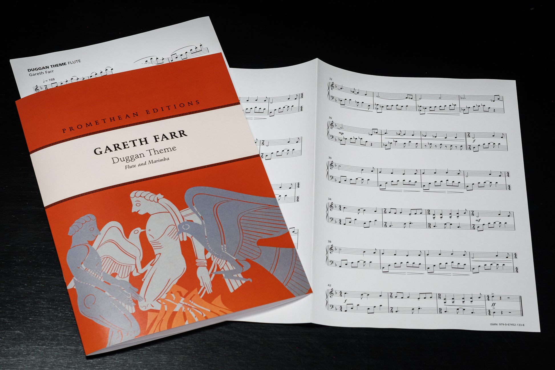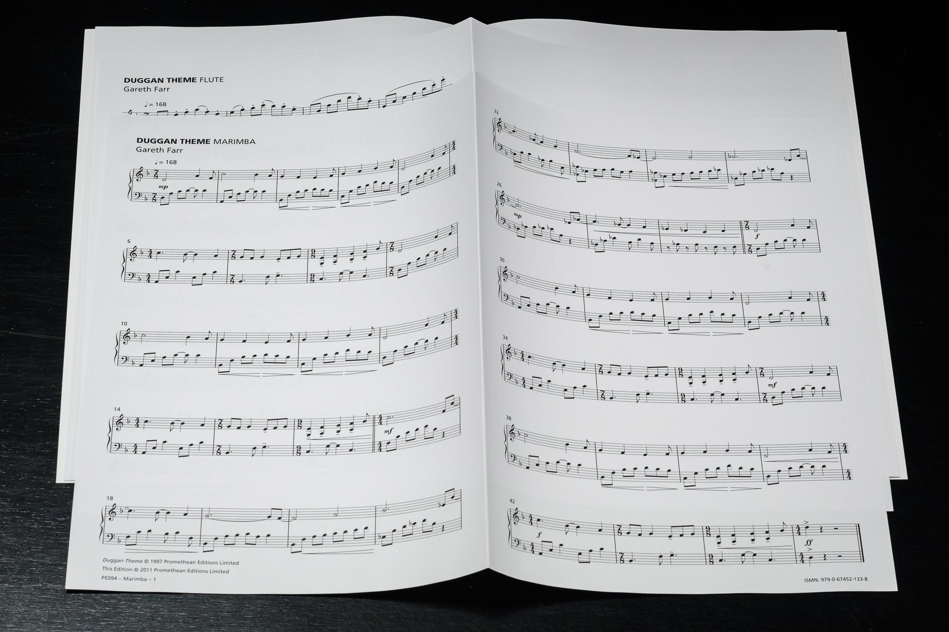 Farr’s Duggan Theme (1997) is a simple and effective duo for flute and marimba that is suitable for beginning chamber music students. It was written for the television police-drama series Duggan, in which a New Zealand Detective Inspector solved grisly murder cases set against the scenic backdrop of New Zealand’s Marlborough Sounds. The work follows a simple ternary form, beginning and ending in the Aeolian (or natural minor) mode, shifting through a variety of major keys in the B section.
