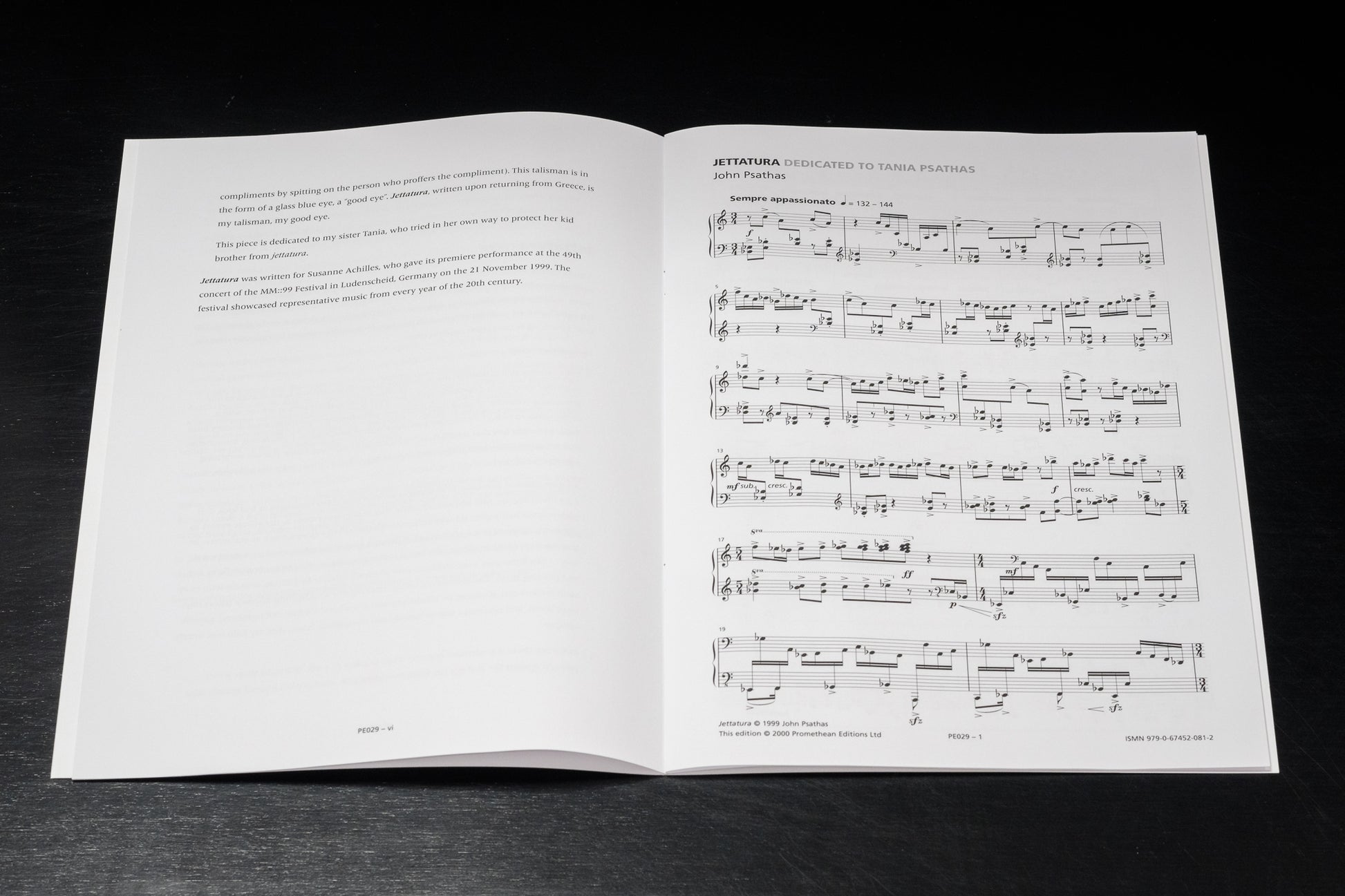 A great test for advanced pianists, Jettatura is an uncomplicated moto perpetuo, and another example of Psathas’s gift for creating high-energy, compelling works. Requiring heavy and impassioned fingering, Jettatura is shot through with defiance and aggression. The left hand hammers a stream of ostinatos while the right hand flies almost incautiously over the keys, stretching to the piano’s upper register.