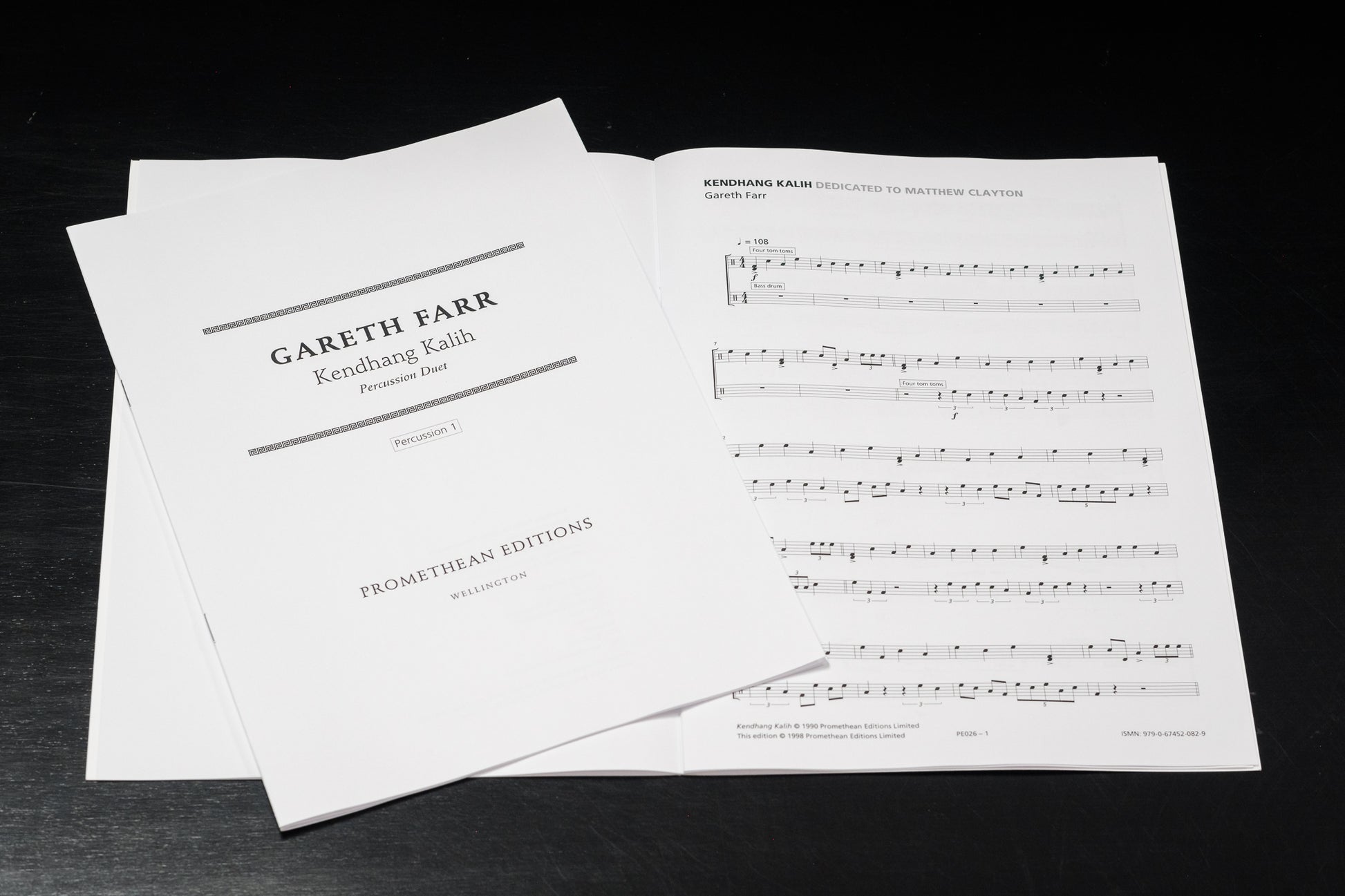 Kendhang Kalih (1990) is an engaging multi-percussion duet inspired by Javanese gamelan music. Each performer plays an independent arrangement of drums, but their rhythms lock into one another to produce the effect of a single large drum setup. The first section contrasts the two performers over a series of phasing repeats; one part becomes denser and quieter, the other becomes sparse and loud. The second section fuses them together in a minimalistic note-by-note construction of a ‘drum melody’.