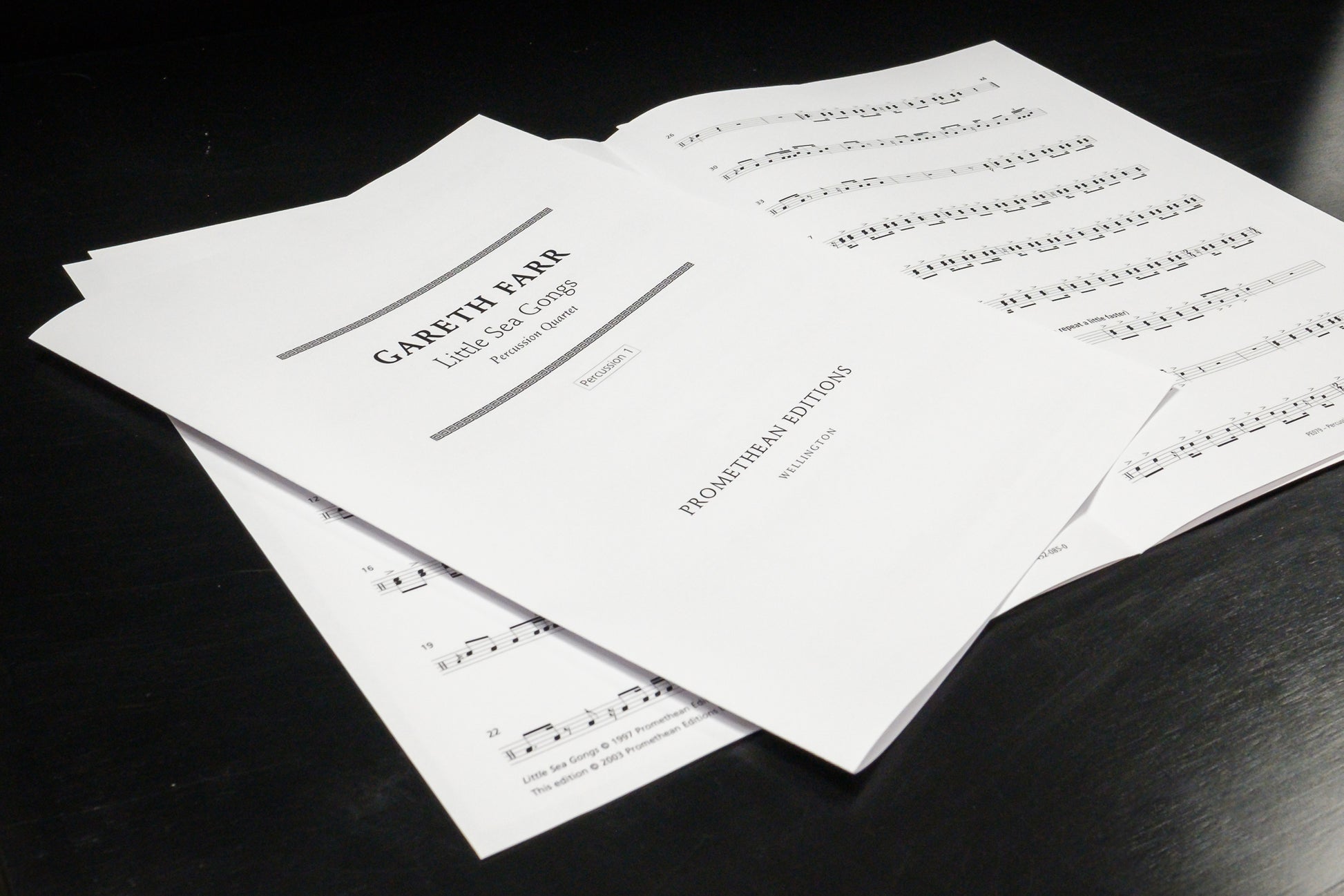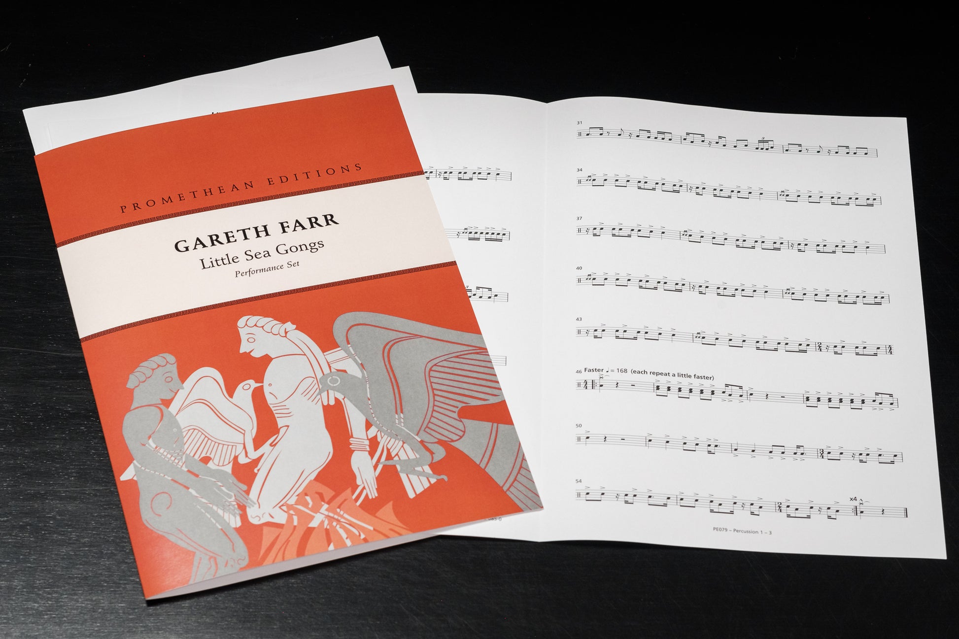 Little Sea Gongs (1997) is a fantastic option for percussion quartets looking to incorporate elements of the Pacific into their repertoire. A miniature companion-piece to Farr’s orchestral work From the Depths Sound the Great Sea Gongs (PE020), the drumming style in Little Sea Gongs is very much inspired by Rarotongan log drumming. It is incessantly fast, with its chatty, murmured rhythms being passed around in call-and-response style as the work rises in waves of extreme volume.