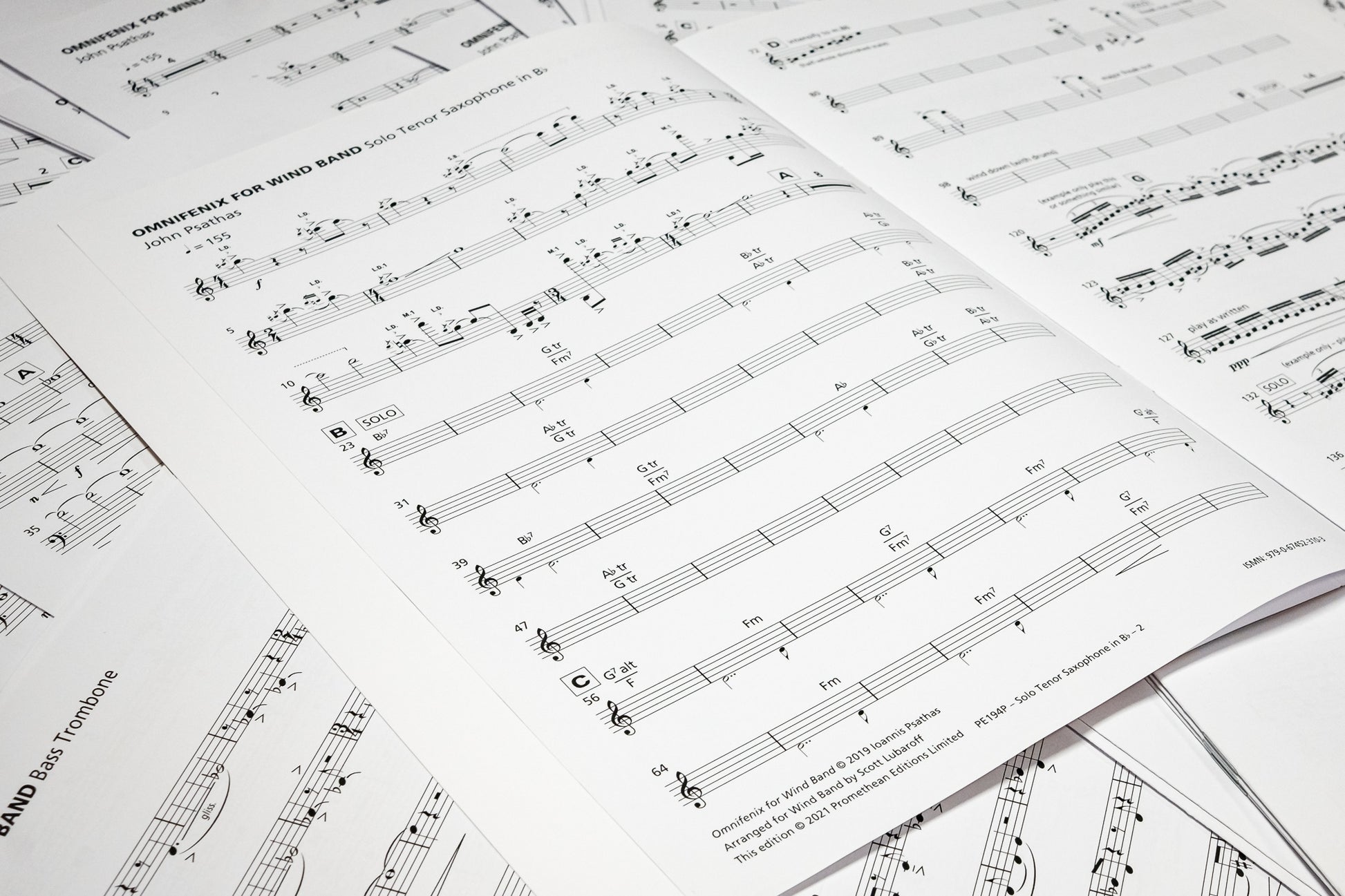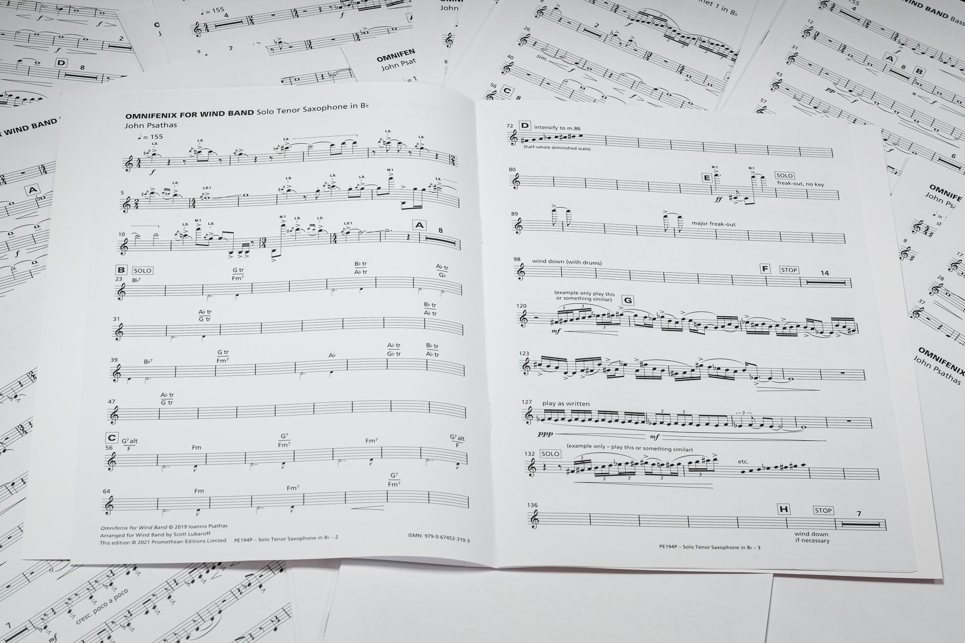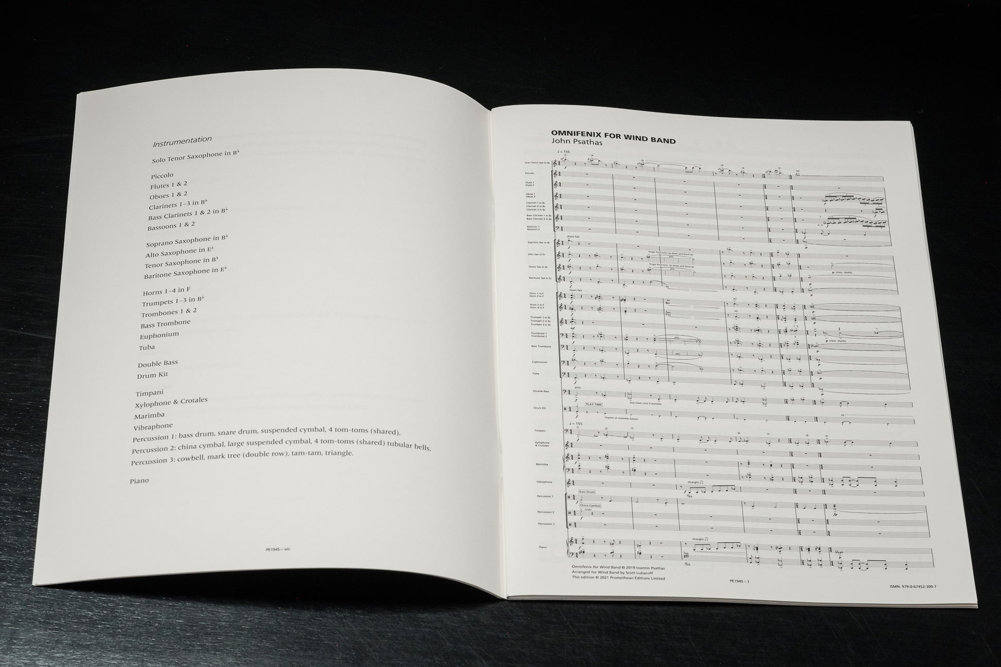 Originally written for tenor saxophone, drum kit and orchestra, John Psathas’ exciting concerto Omnifenix has been arranged by Scott Lubaroff to fit the instrumentation of the contemporary wind ensemble, adding parts for additional mallet instruments and piano. Omnifenix is an unusual concerto in that the majority of the two concertante parts consist of instructions for directed improvisation. Like a phoenix, the improviser will continue to emerge anew and redefine the rules of their dynamic dialogue with the orchestra each time the work is performed.