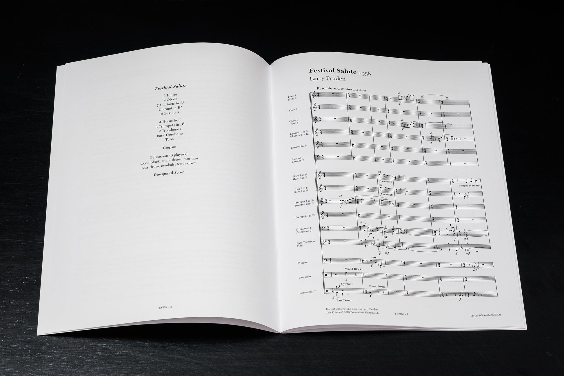 Festival Salute is Larry Pruden’s sole work for wind orchestra. It was commissioned by the New Zealand Broadcasting Service to mark the first concert by the New Zealand Symphony Orchestra at the opening season of the New Plymouth Festival of the Pines in 1958.