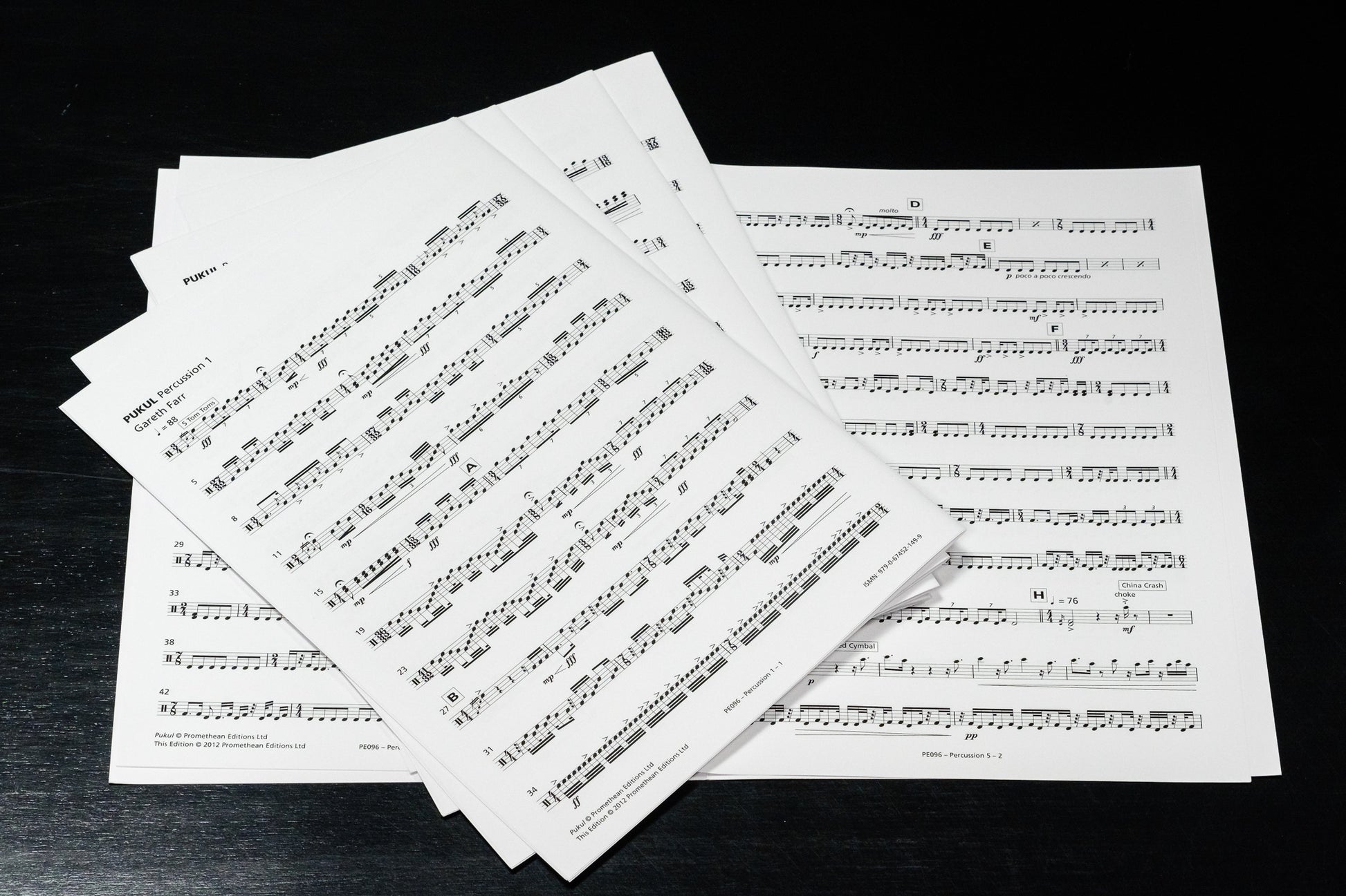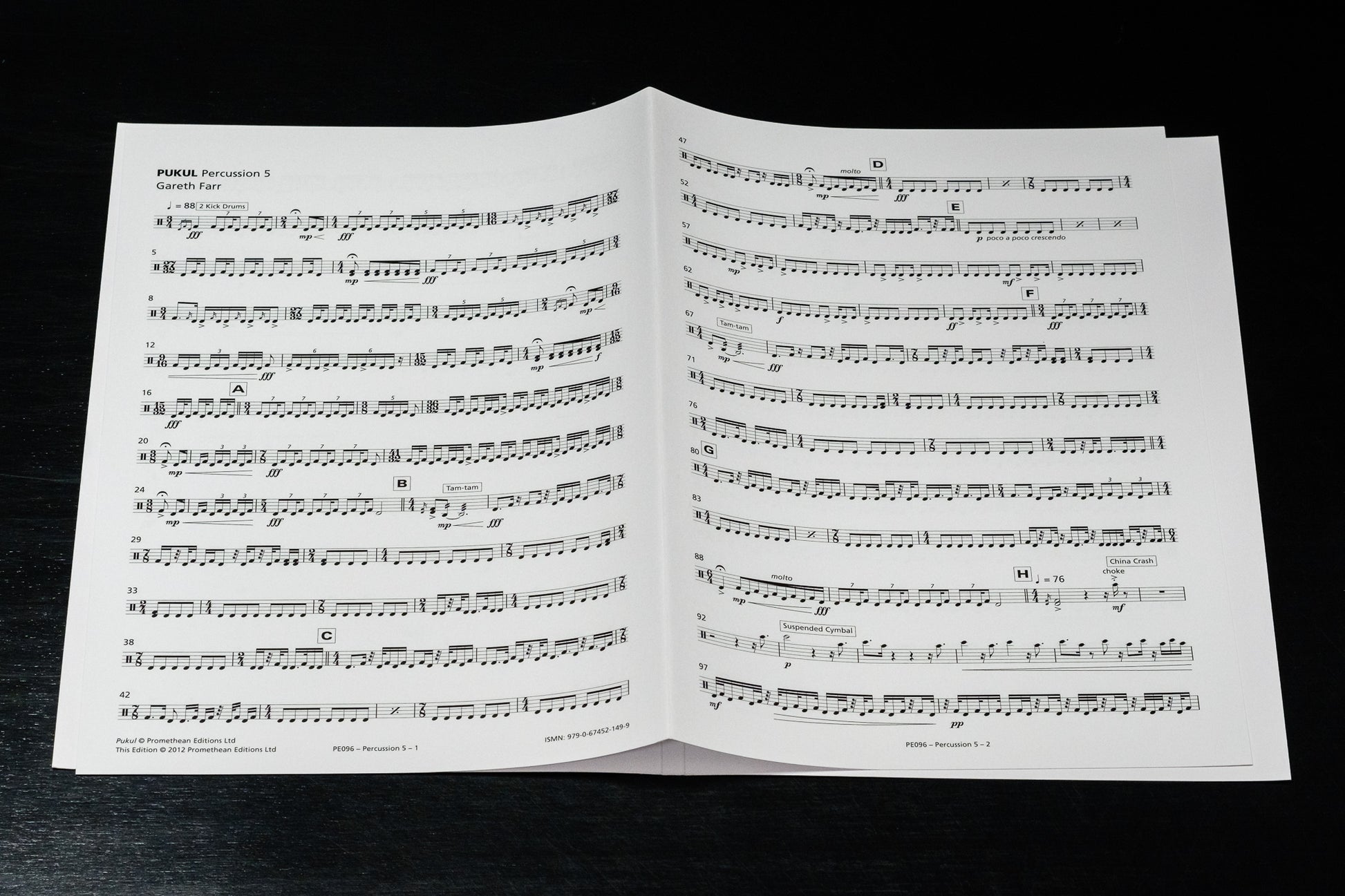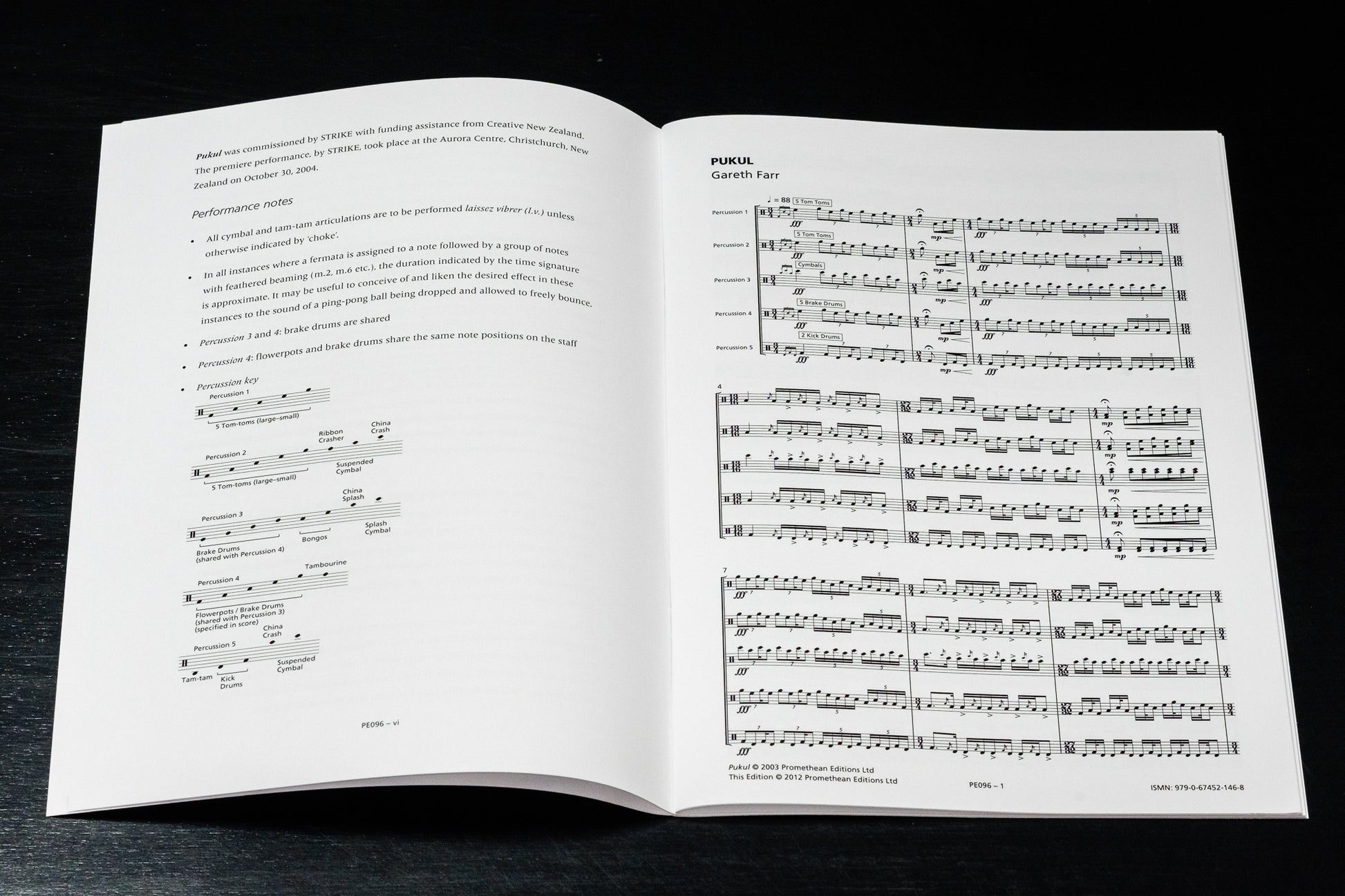 This work brims with exciting rhythms and sounds of the Pacific. It draws inspiration from a variety of influences including the percussion music of Bali and the Cook Islands. In this work Farr brings this influence to a Western percussion ensemble. It includes a colourful array of percussion instruments, including: tom-toms, cymbals, brake drums, bongos, tam-tam, kick drums, tambourine and flower pots. Pukul is a show-stopper that is sure to be a blast for percussion ensembles and audiences.