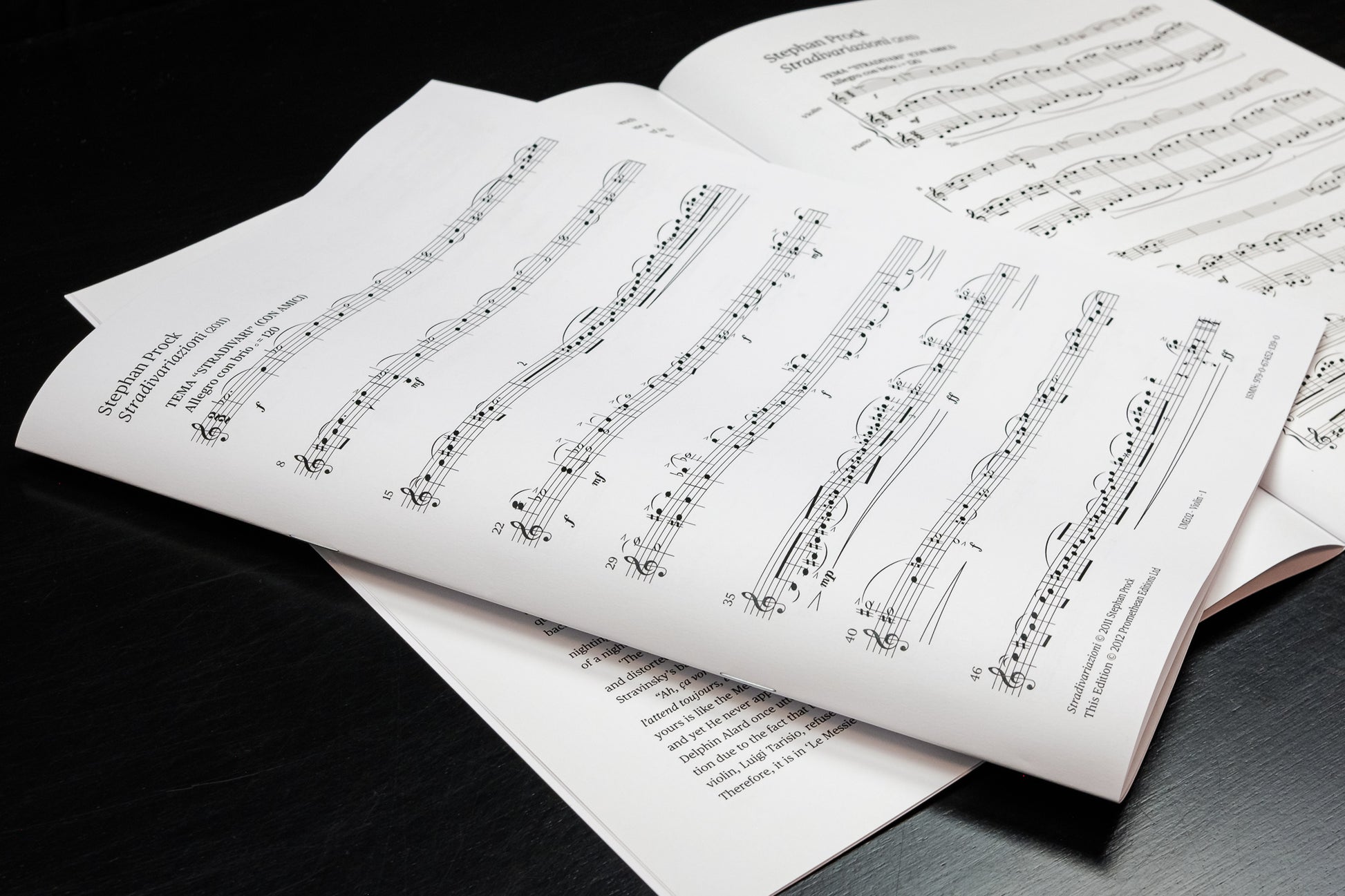 Stradivariazioni contains fascinating historical links to the famous instruments of the Italian violin maker Stradivari and to the tradition of variation as a form of music-writing in which the music is cast. This work reveals Prock’s eclectic range of influences and demonstrates an intricate and beautiful sound world for which he writes “one that is created from meticulously crafted compositional devices, such as musical ciphers.” Musicologists, composers and performers will all find enjoyment in studying and performing this work, which would suitably fit in any violin recital programme or as a featured work to study in music composition courses.